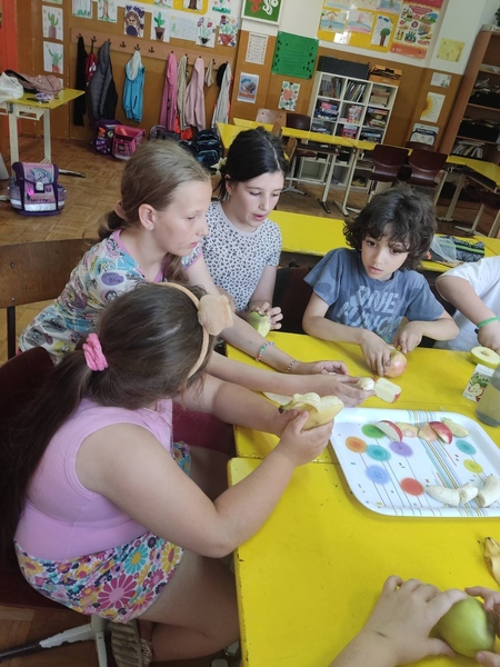 У оквиру продуженог боравка, ученици су правили воћну салату. Разговарали смо о врстама воћа, нашем омиљеном воћу и због чега је неопходно да га свакодневно уносимо у организам. Научили смо који витамини се налазе у воћу и за шта нам они служе. Затим су ученици уживали у радионици прављења воћне салате. Показали су своју машту и креативност.