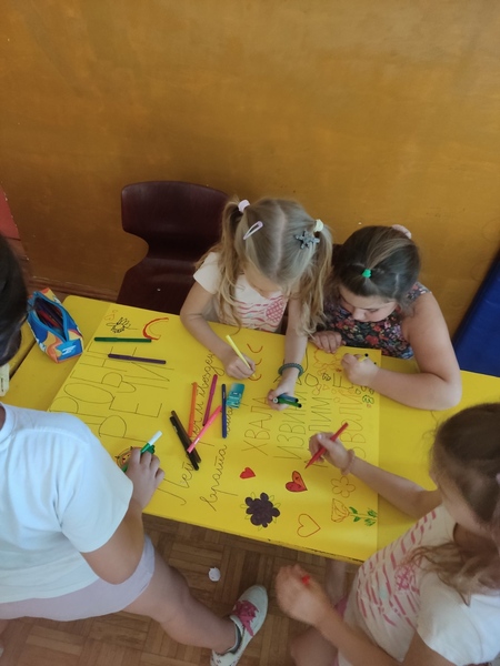 U okviru produženog boravka u školi, učenici su imali priliku da jedan dan provedu u fizičkim aktivnostima kroz koje su se opustili, kao i da se kroz radionicu ,,Lepa reč i gvozdena vrata otvara" upoznaju sa čarobnim rečima pomoću kojih svakodnevno komuniciramo.Fizičke aktivnosti su realizovane kroz poligon. Učenici su prelazili različite prepreke, poput: preskakanja, provlačenja i vođenja lopte. Posle uspešno realizovanog poligona imali su priliku da se opuste kroz igru: ,,Dan-noć".