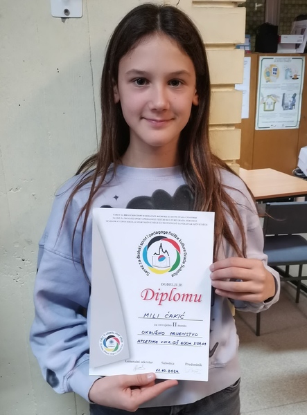 U organizaciji Saveza za školski sport i pedagoga fizičke kulture grada Subotice, naša učenica 6/1 odeljenja, Mila Ćakić, na okružnom prvenstvu u atletici (600 m) sa vremenom 02:07:09 osvojila je drugo mesto. Čestitamo Mila !